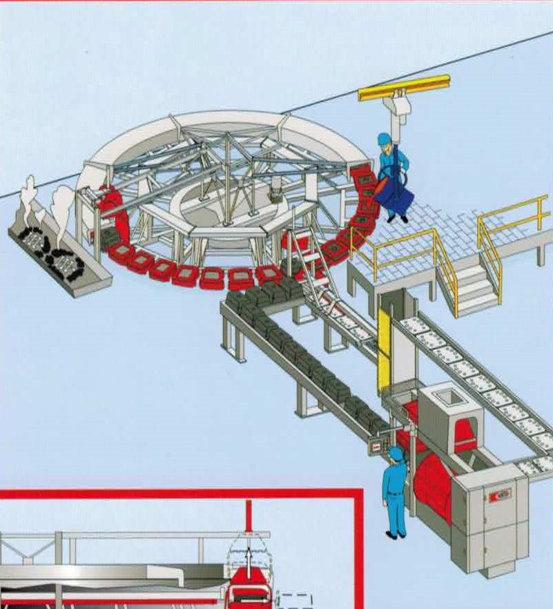 - Automated Pouring and Cooling Cycle: After pouring, the cooling cycle begins immediately, and molds are indexed automatically to the next stage, ensuring smooth operation.